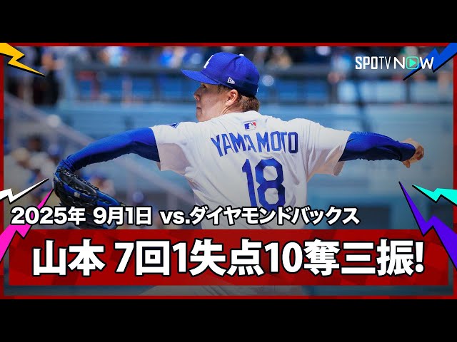 【“圧巻ショー”山本由伸 7回1失点無四球10奪三振の好投で降板!】ダイヤモンドバックスvsドジャース MLB2025シーズン 9.1 / SPOTVNOW