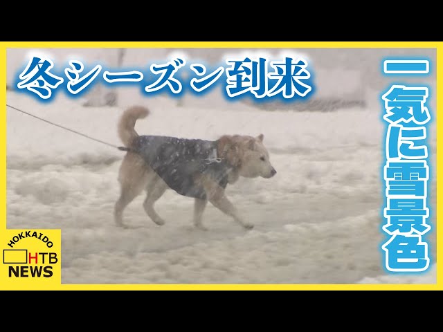 「急に どさっと」一気に雪景色 そりで保育園に通う姿も 札幌の山沿いは真っ赤な紅葉に白い雪 / HTB北海道ニュース
