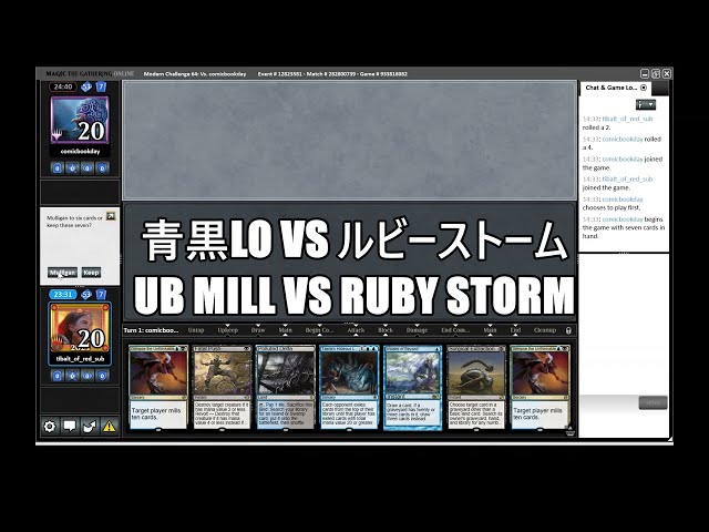 【MO Modern Challenge】青黒LOvsルビーストーム UB Mill vs Ruby Storm / 赤ティボLO伝