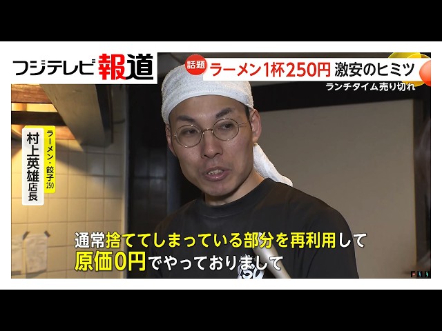 1杯250円の激安ラーメン 通常捨てている麺の“端材”活用で麺の原価0円に…餃子も250円(2026年02月26日) / フジテレビ 報道【公式】