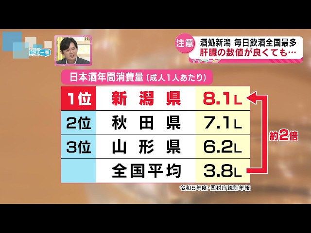 【飲酒事情】酒どころ新潟は消費量も全国トップ!過度な飲み方は健康に障害も 飲酒時の注意や対策は《新潟》 / TeNY新潟一番ニュース