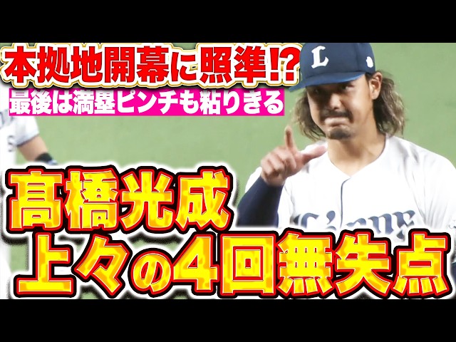 【本拠地開幕に照準!?】髙橋光成『最後は満塁ピンチも粘りの投球!4回2安打無失点と文句なしの仕上がりアピール!!』 / (パーソル パ・リーグTV公式)PacificLeagueTV
