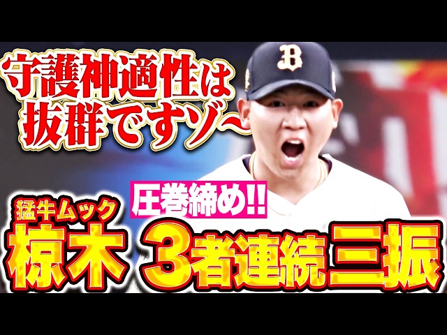 【守護神適性は抜群ですぞ〜】椋木蓮『猛牛ムックが圧巻締め!最終回1点差でも堂々3者連続三振!』 / (パーソル パ・リーグTV公式)PacificLeagueTV